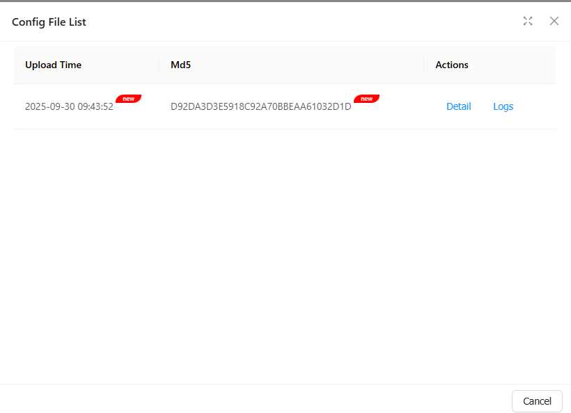 Step 1: Click the   icon in the Action column of a XS-S1620J switch, and then click Config Upload.