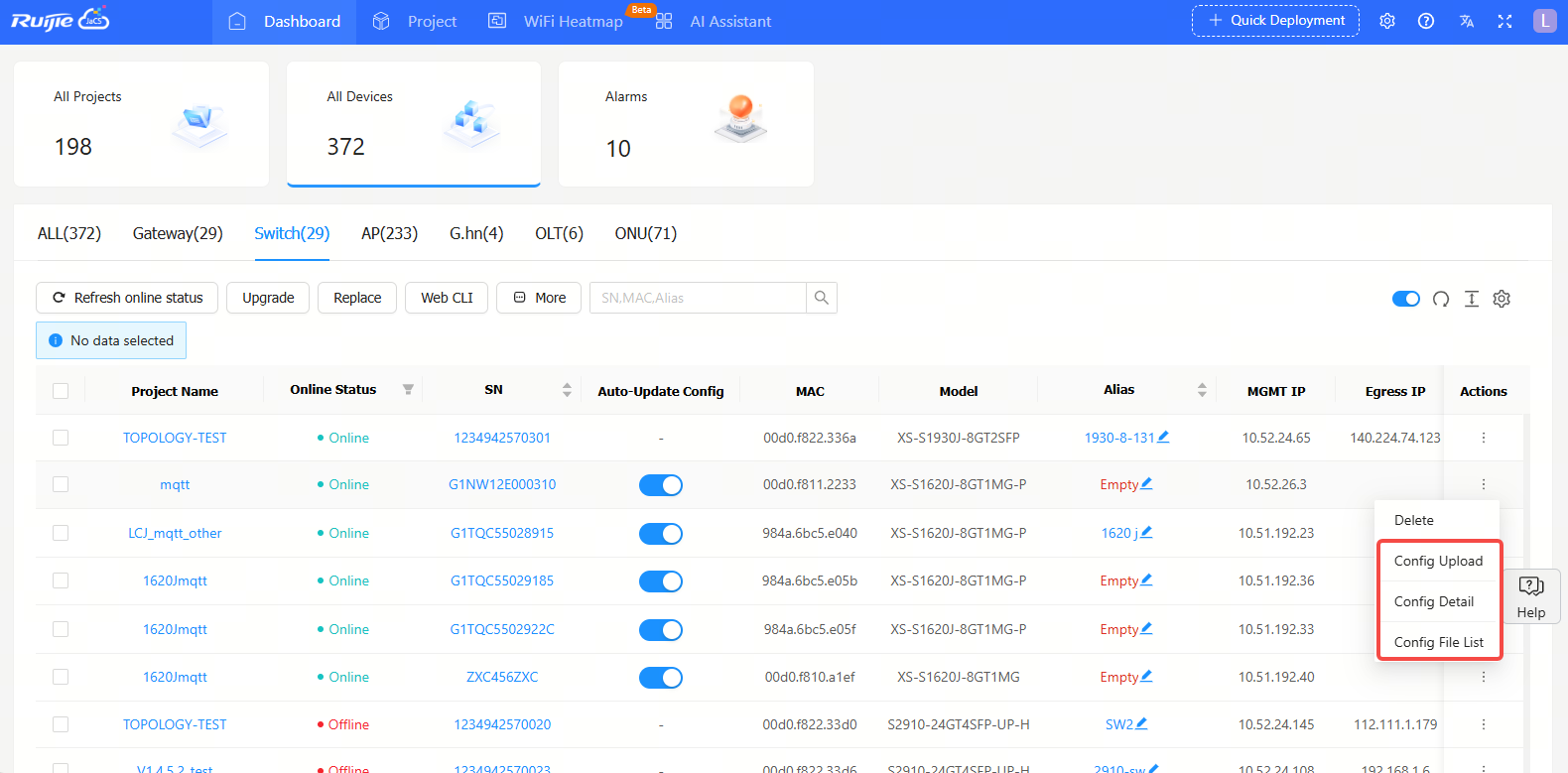 2 | Configuration | Configurations of up to 200 devices can be imported each time. To import configurations of over 200 devices, users need to do it in batches. |